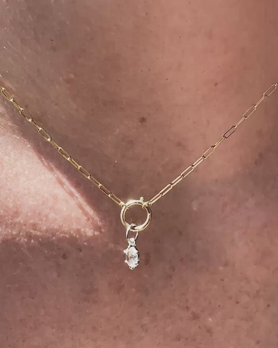 Powerful in its simplicity, antique cushion cut diamond in a 6 prong vintage inspired setting. Handcrafted in 14K sustainable gold the pendant merges modernity with elegance. With recycled gold and sustainable craftsmanship, the design is informed by a deep appreciation of our natural resources.