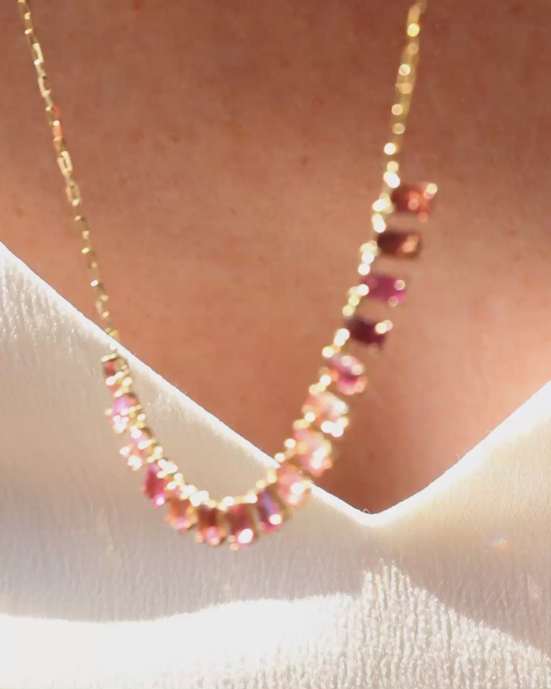 The Cleo design was 15 years in the making. The seemingly simple design went through countless iterations and designs over the years before Vikas settled on this free flowing design that lays perfectly on the neck. Designed it to be worn at a longer length but can be shortened if need be.