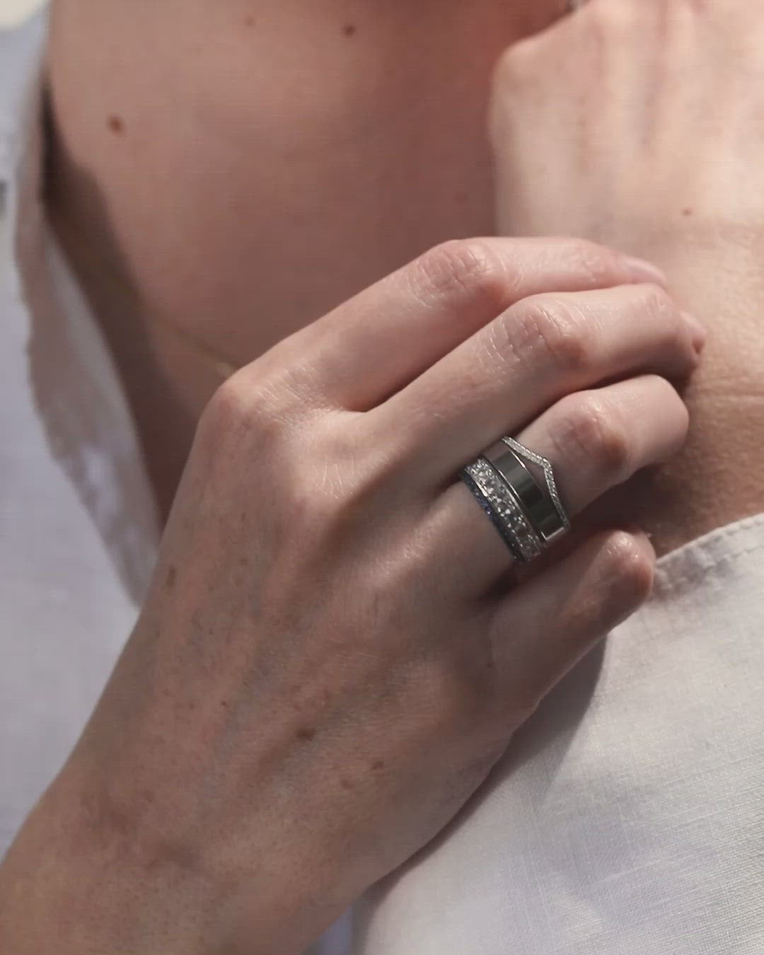 An unexpected twist on simple elegance, Marlana is a 14K gold pave band sustainably handcrafted using ethically mined materials.