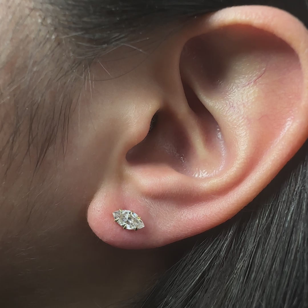 Captivating marquise-cut diamond studs with claw prong settings, elegantly cradling each diamond's brilliance for a touch of timeless sophistication. Find the perfect pair of certified lab grown or natural marquise diamonds with our curated diamond search.